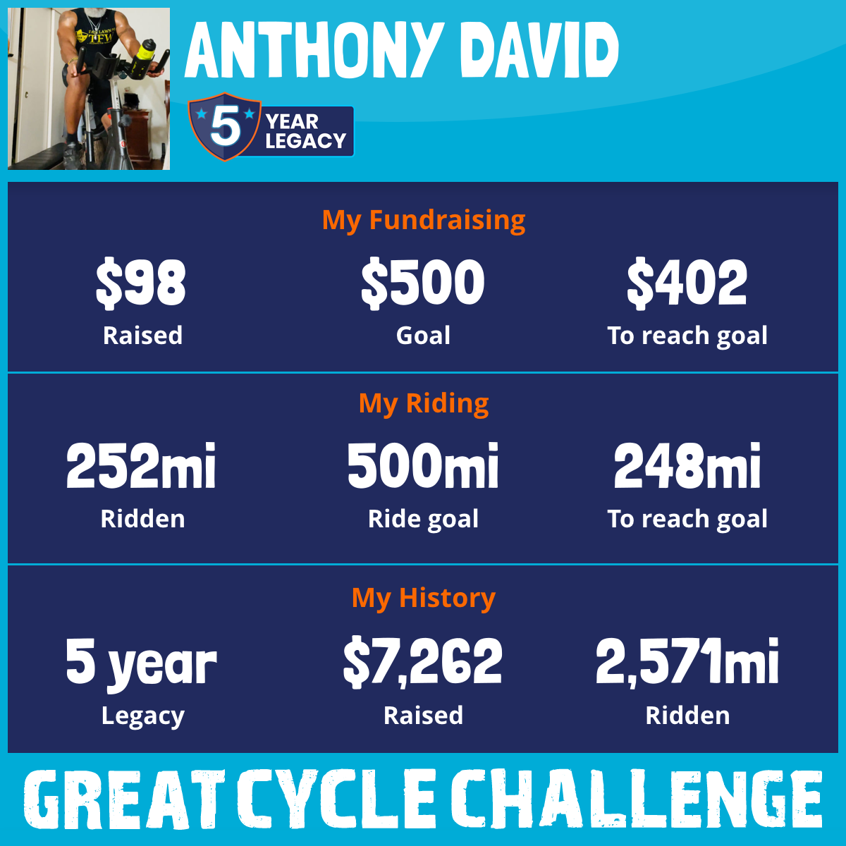 I am riding 500 mi in memory of Marcus Jackson and Helen Jackson. Please sponsor me and support my challenge to fight kids' cancer and save little lives.