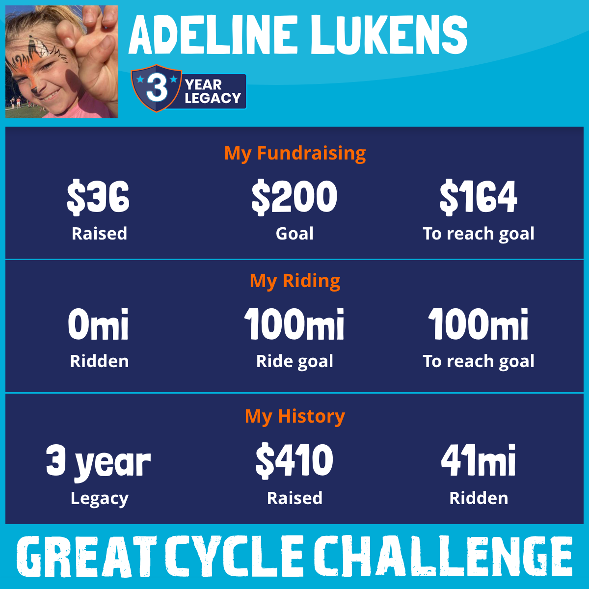 I am riding 100 mi to fight kids' cancer and save little lives. Please sponsor me to support my challenge!