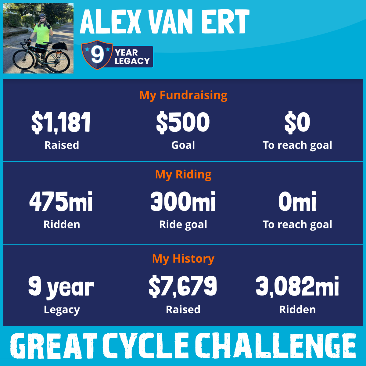 475 mi Ridden$1,181 Raised2025