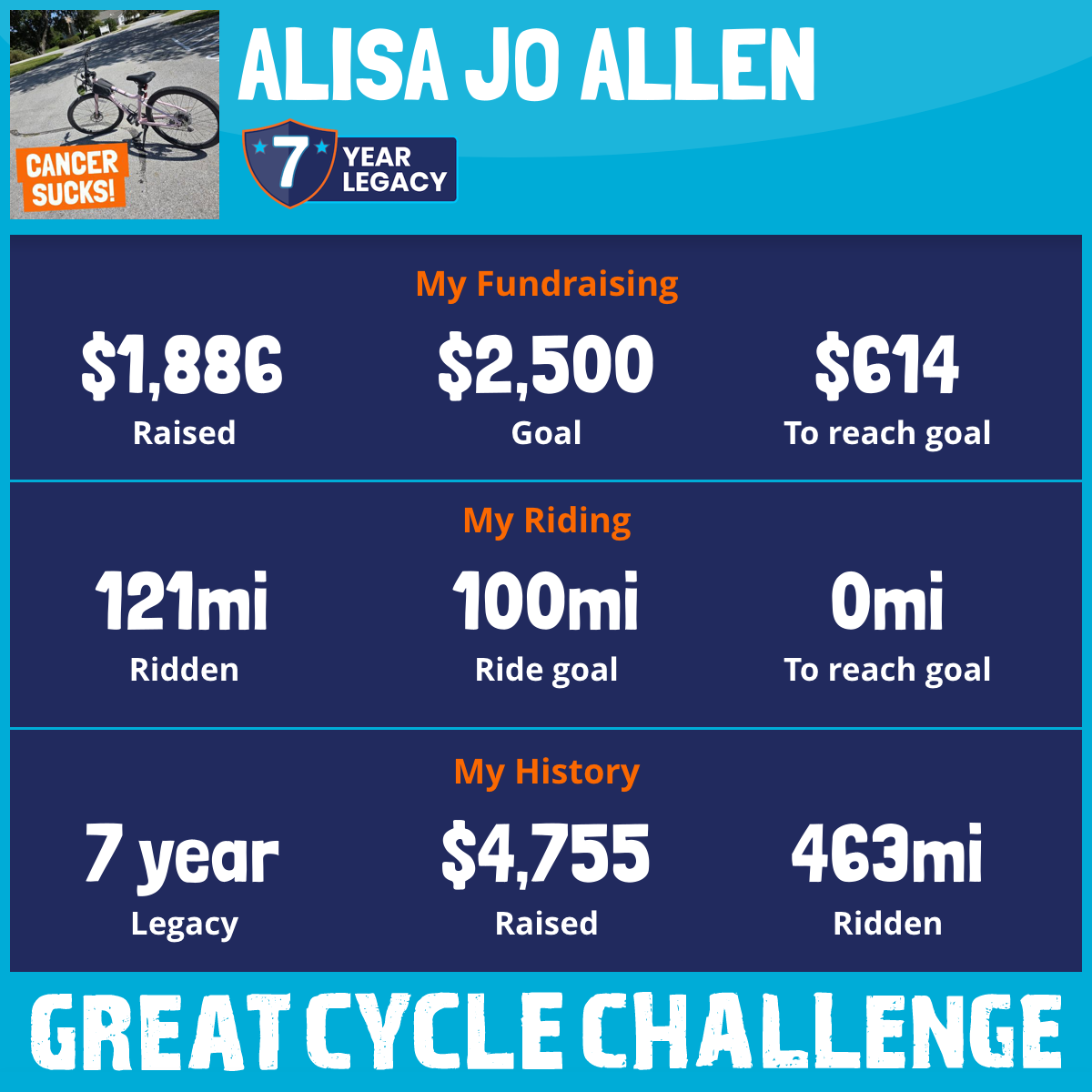 121 mi Ridden$1,886 Raised2026