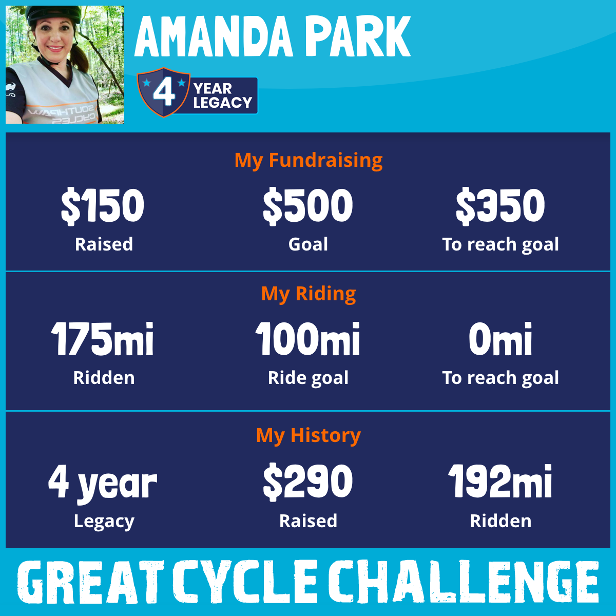 I am riding 100 mi in memory of my friend, Karen Lee. Please sponsor me and support my challenge to fight kids' cancer and save little lives.