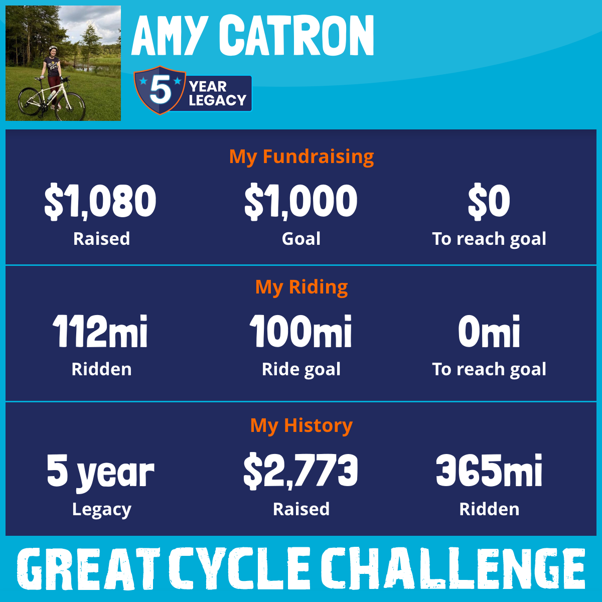 This September, I am participating in the Great Cycle Challenge to fight kids' cancer! On September 13, all donations will be matched. It’s my fifth year to participate in this challenge!