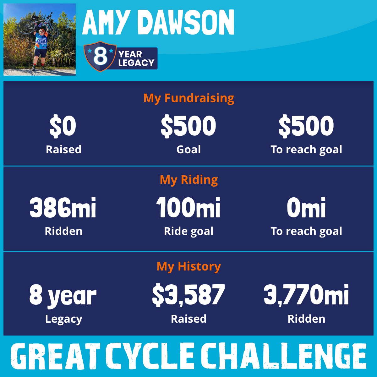This September, I am once again taking part in the Great Cycle Challenge to fight kids' cancer! This will be my 6th year riding for this cause.