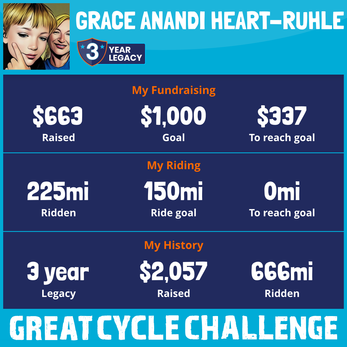 Wade will never know that he is one of the lucky ones. He underwent 2.5 years of chemotherapy treatments, and it was terrifying and traumatic for the family. There are so many children that had terrible reactions to treatment, extended hospitalizations due to infection. And way too many that lost their battles. I ride to remember and honor these children. I ride hoping that the money raised every year will make a difference in the future for all the families that will have to go through this journey. Please help by donating anything you can. Thank you Anandi