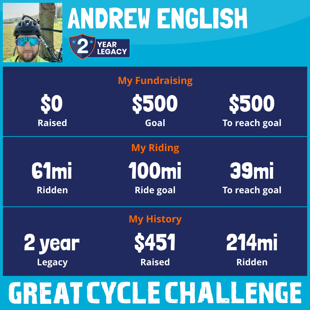 I've raised $0 My goal is $500 Donate Now
