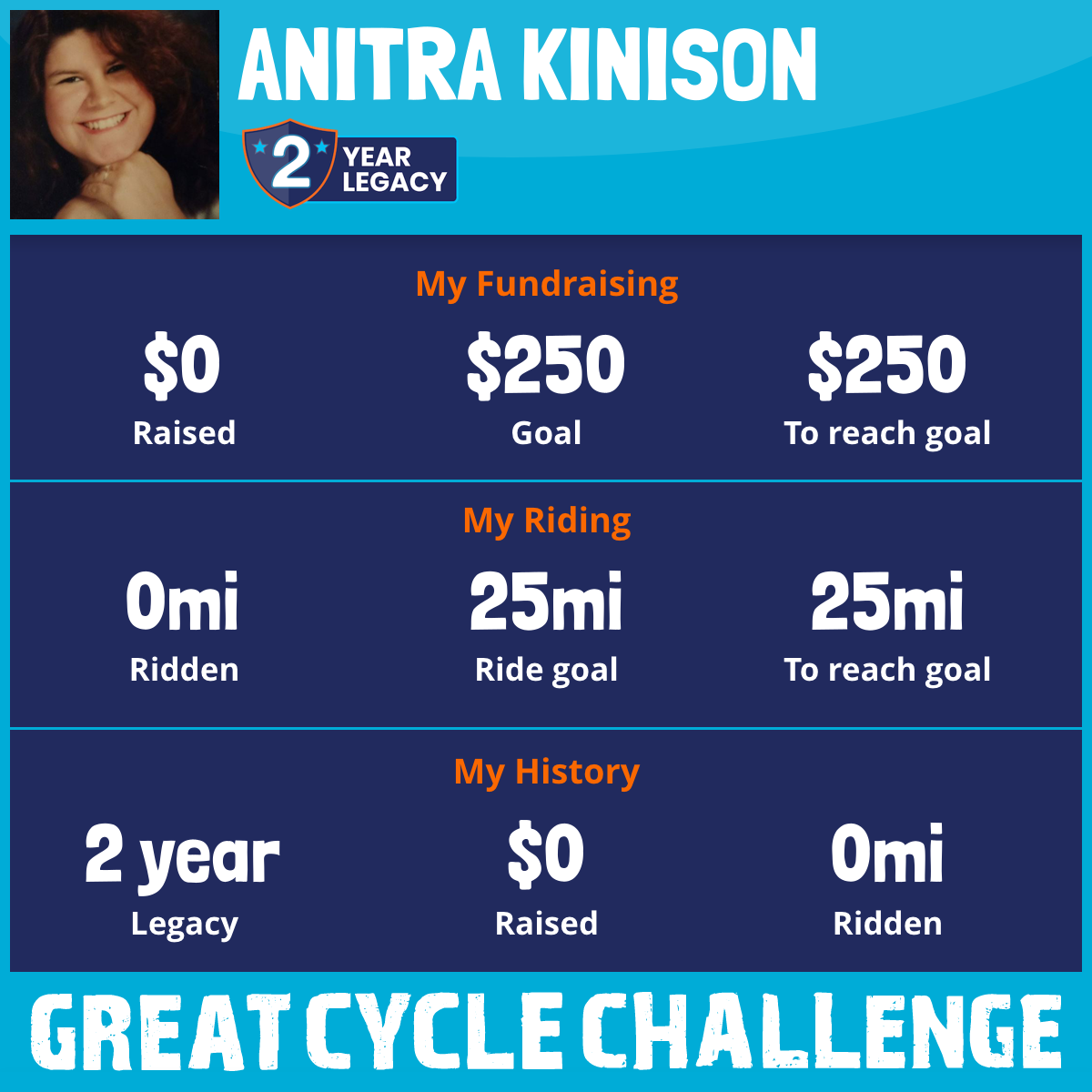 I've raised $0 My goal is $250 Donate Now
