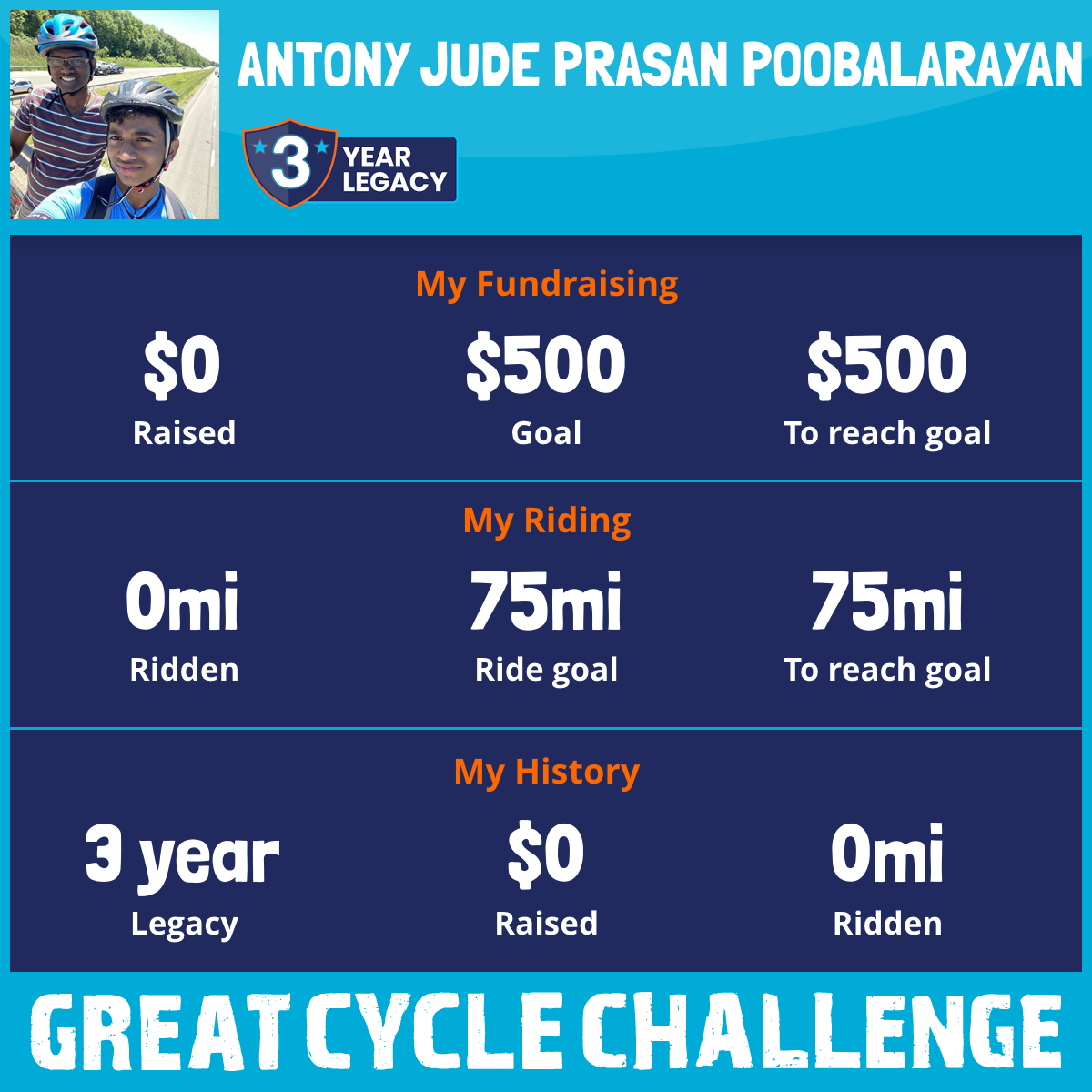 I am riding 75 mi to fight kids' cancer and save little lives. Please sponsor me to support my challenge!