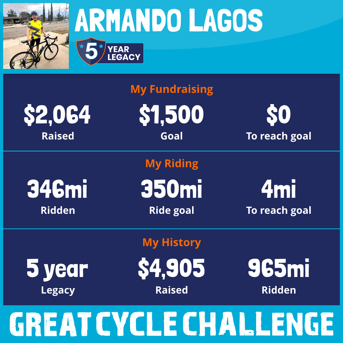 346 mi Ridden$2,064 Raised2025