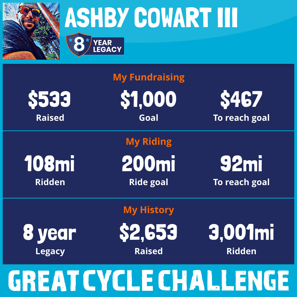 451 mi Ridden$550 Raised2017