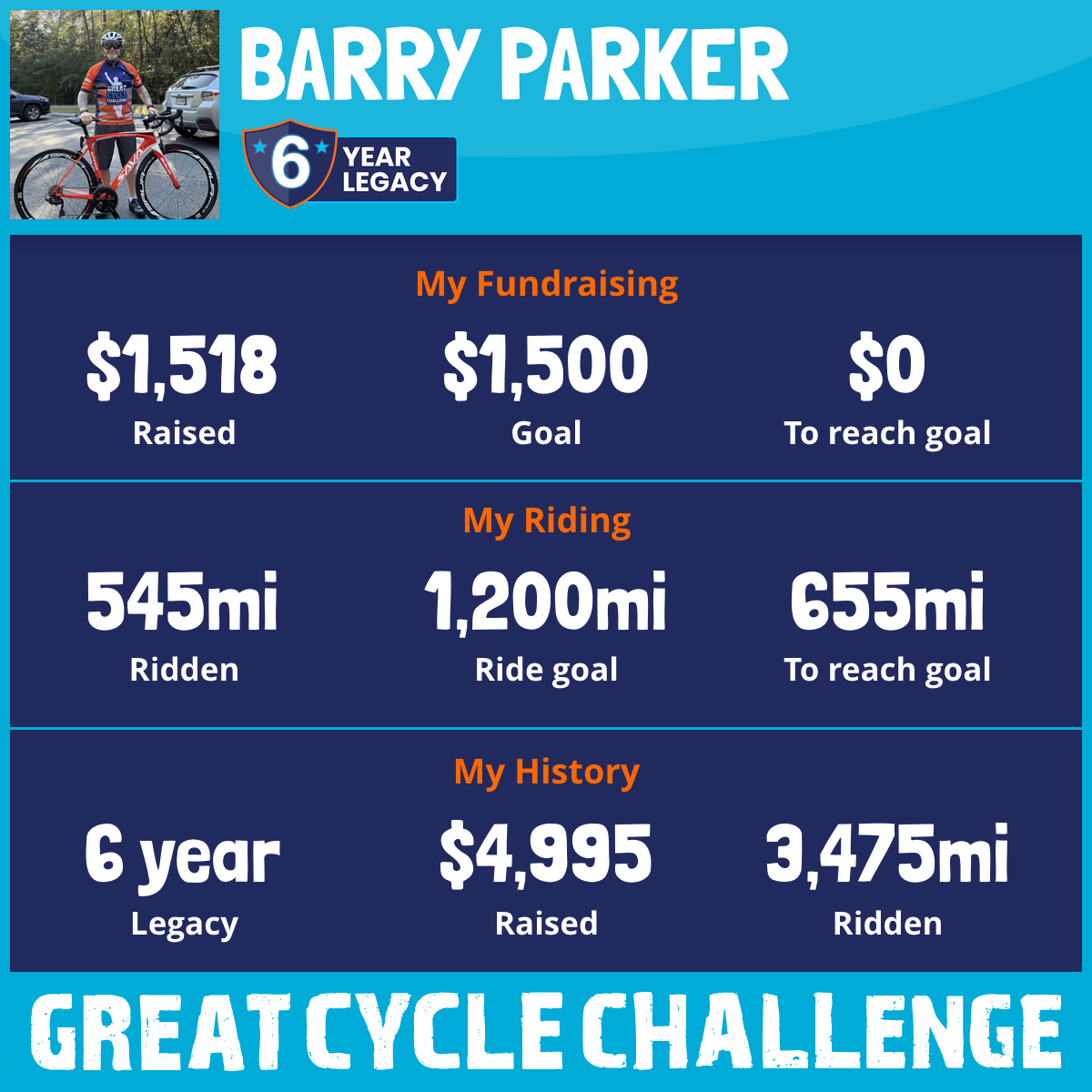 I am riding 1,500 mi in memory of Kids Cancer. Please sponsor me and support my challenge to fight kids' cancer and save little lives.