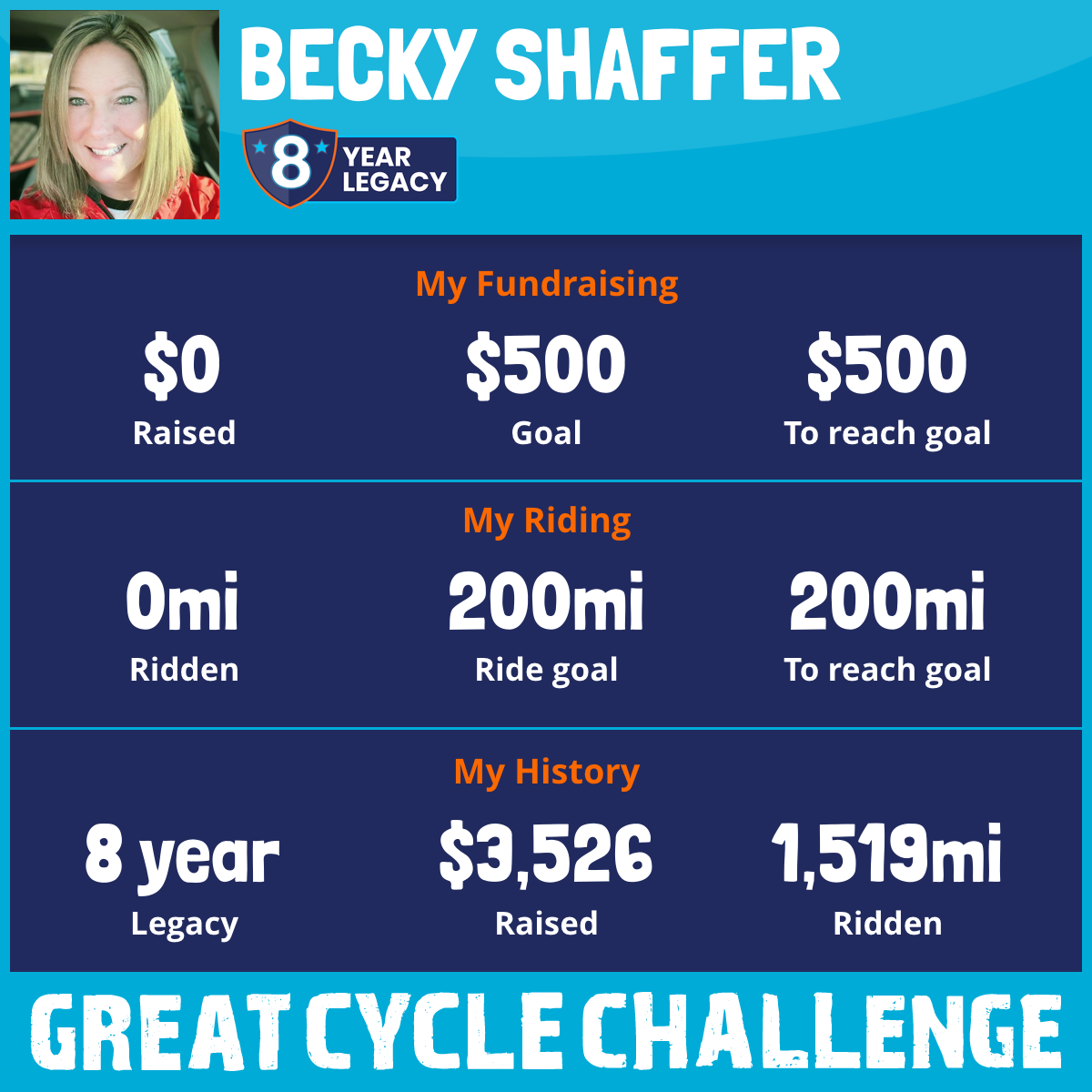 This September, I am participating in the Great Cycle Challenge to fight kids' cancer! This is my 7th year doing this ride to support the fight against kids' cancer.