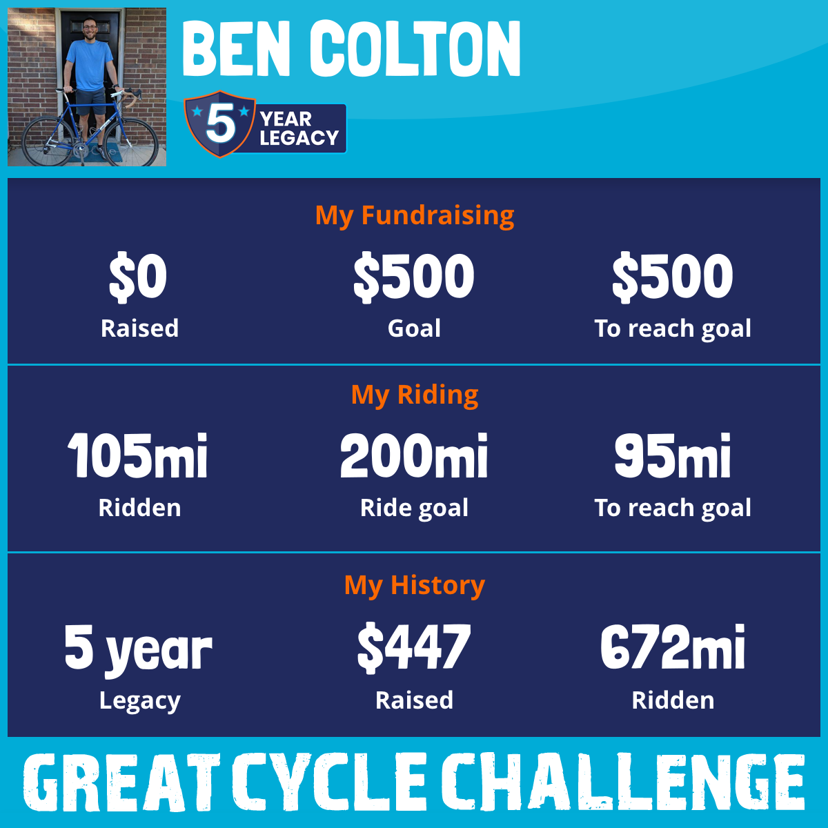 I am riding 200 mi to fight kids' cancer and save little lives. Please sponsor me to support my challenge!
