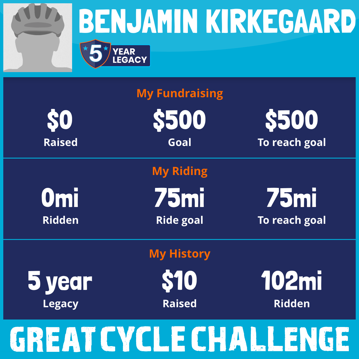 I am riding 75 mi in memory of Justin. Please sponsor me and support my challenge to fight kids' cancer and save little lives.