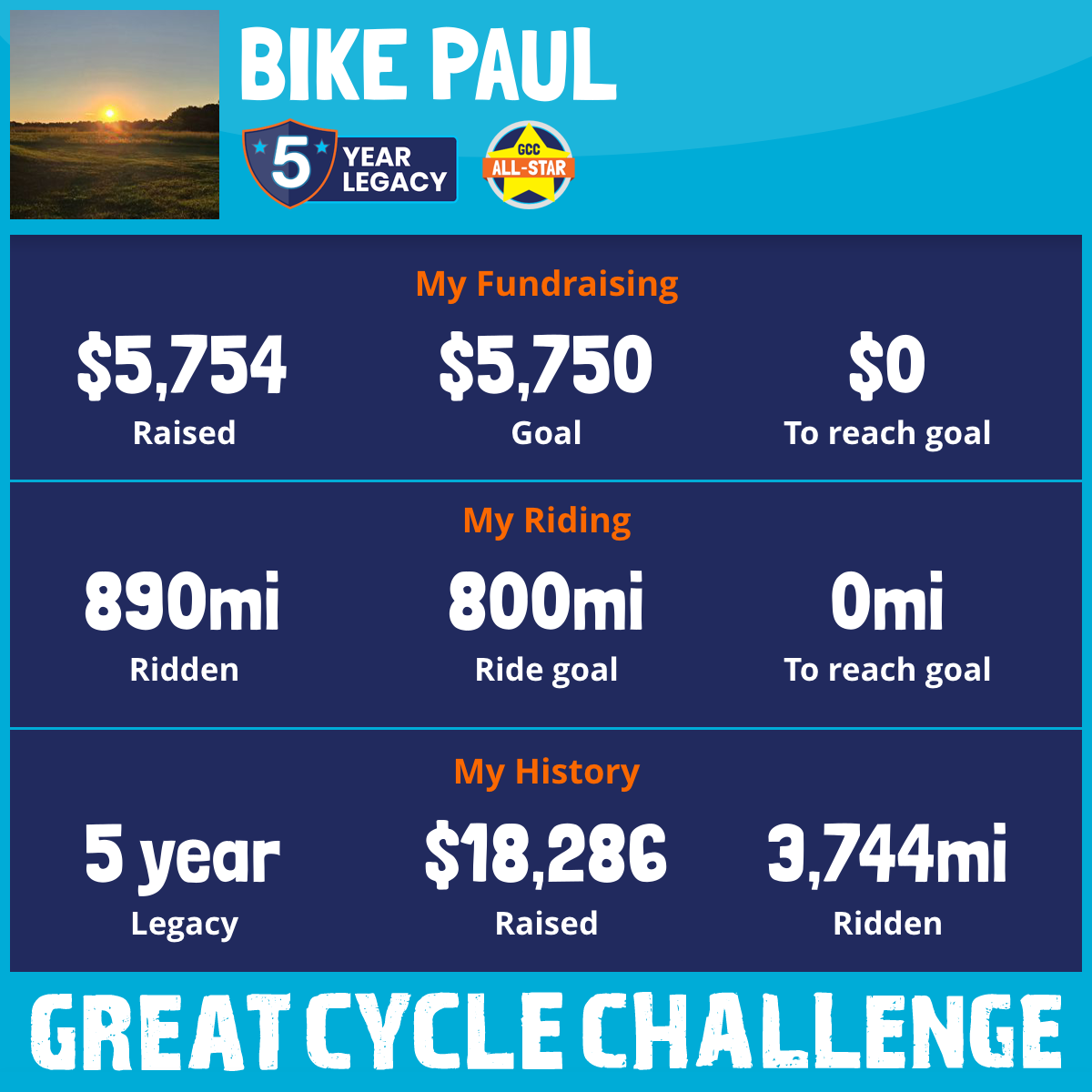 890 mi Ridden$5,754 Raised2025