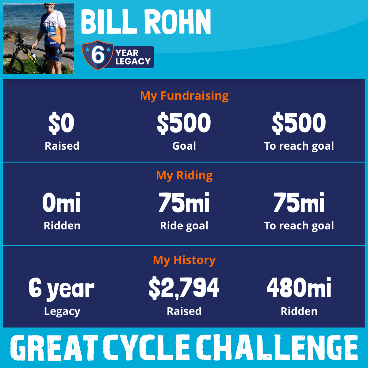 I've raised $0 My goal is $500 Donate Now