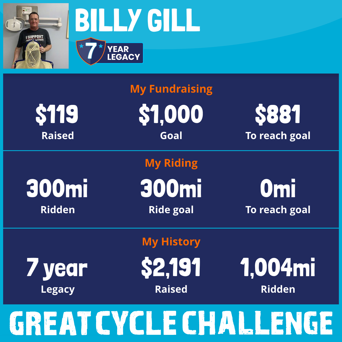 300 mi Ridden$119 Raised2025