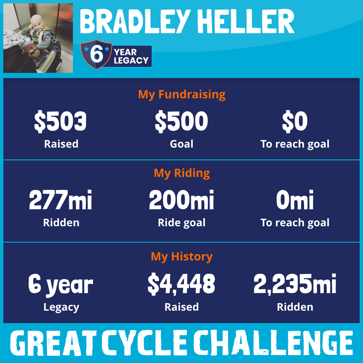 I am riding 200 mi in memory of Abel Alan Heller #Beezstrong. Please sponsor me and support my challenge to fight kids' cancer and save little lives.