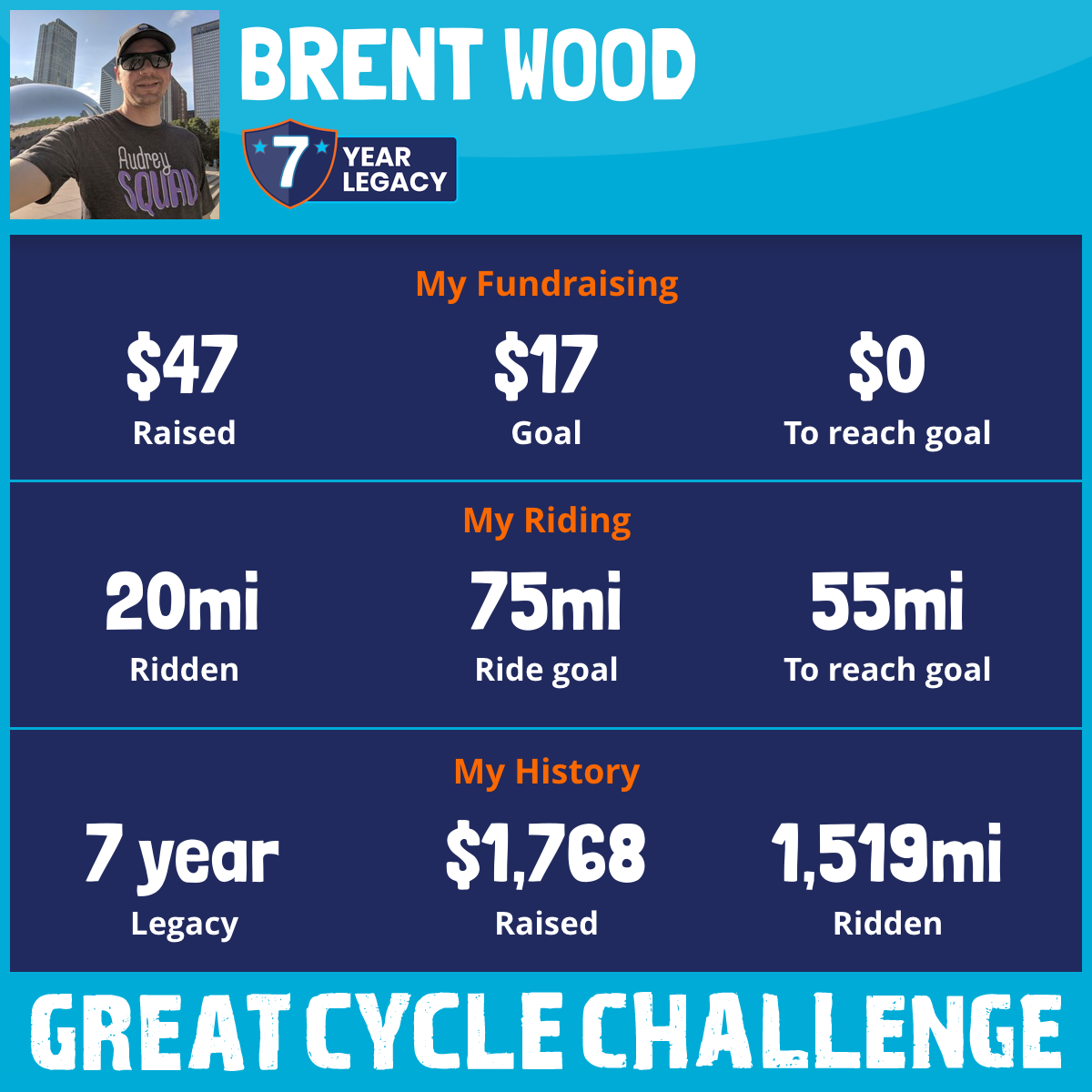 I am riding 75 mi in memory of Audrey Wood. Please sponsor me and support my challenge to fight kids' cancer and save little lives.