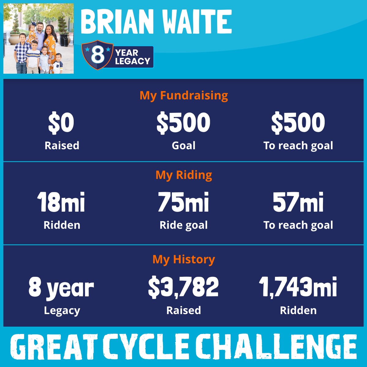 I am riding 75 mi to fight kids' cancer and save little lives. Please sponsor me to support my challenge!