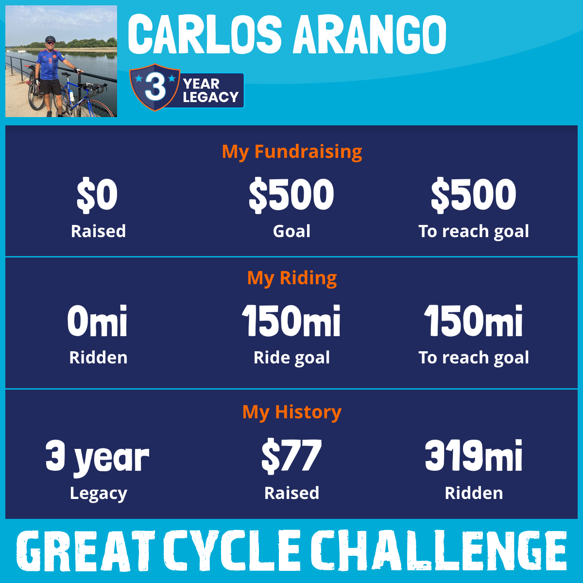 I've raised $0 My goal is $500 Donate Now