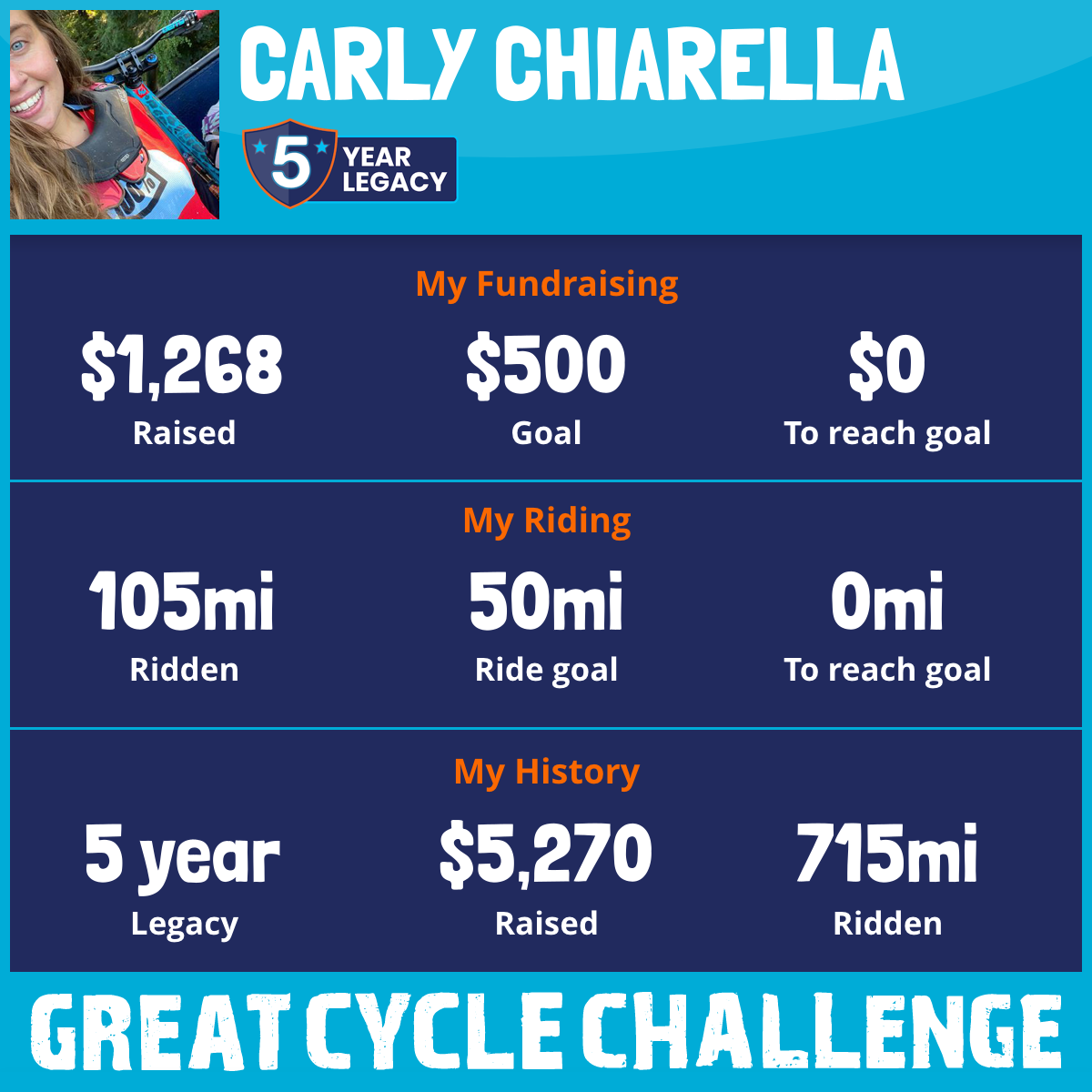 205 mi Ridden$1,580 Raised2023