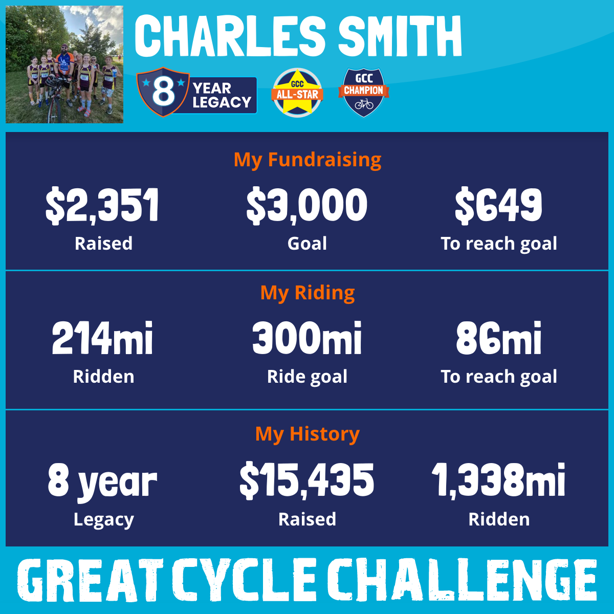214 mi Ridden$2,351 Raised2025