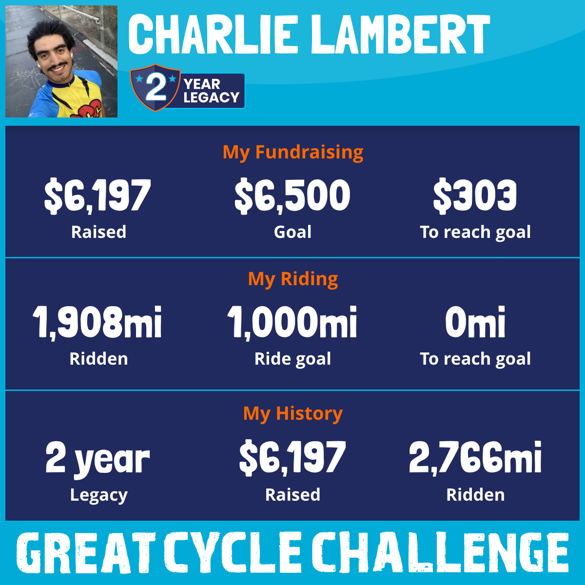 1,908 mi Ridden$6,197 Raised2025
