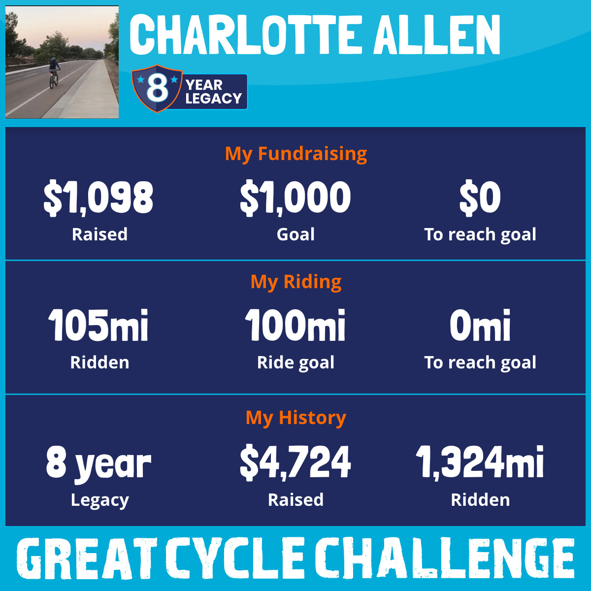105 mi Ridden$1,098 Raised2025