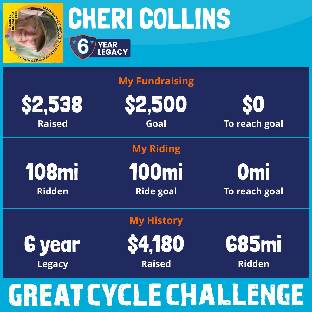 I am riding 100 mi for my sister, Helene. Please sponsor me and support my challenge to fight kids' cancer and save little lives.