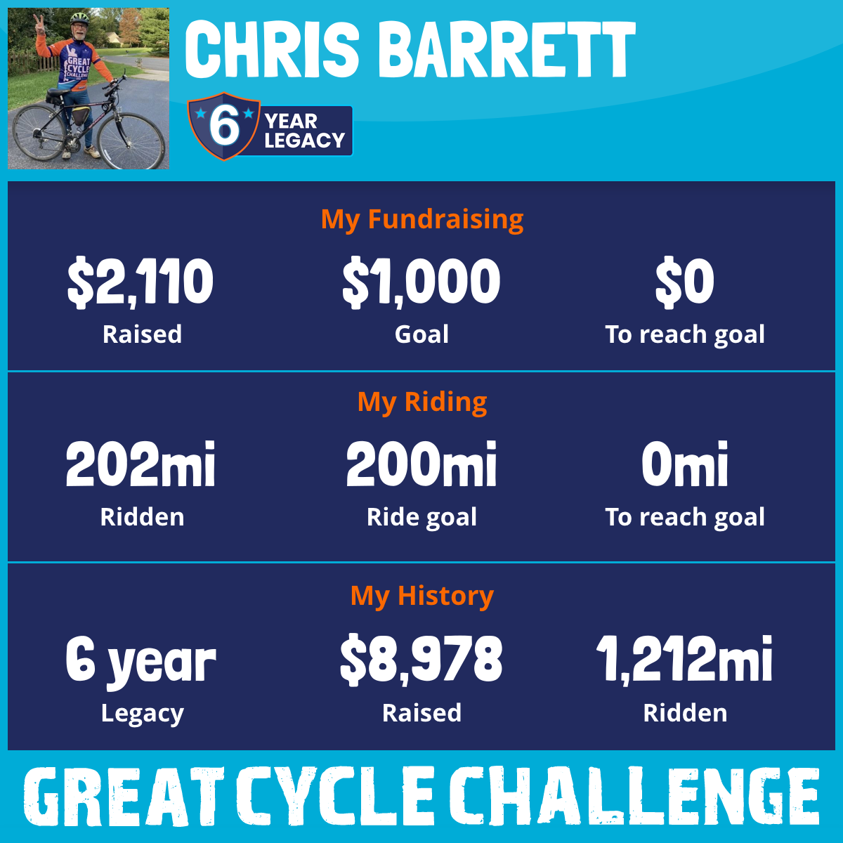 I am riding 100 mi in memory of Mike Barnett. Please sponsor me and support my challenge to fight kids' cancer and save little lives.