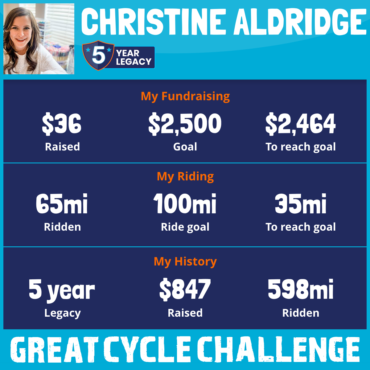 So I am raising funds through my challenge to help these kids and support Children's Cancer Research Fund to allow them to continue their work to develop lifesaving treatments and find a cure for childhood cancer.
