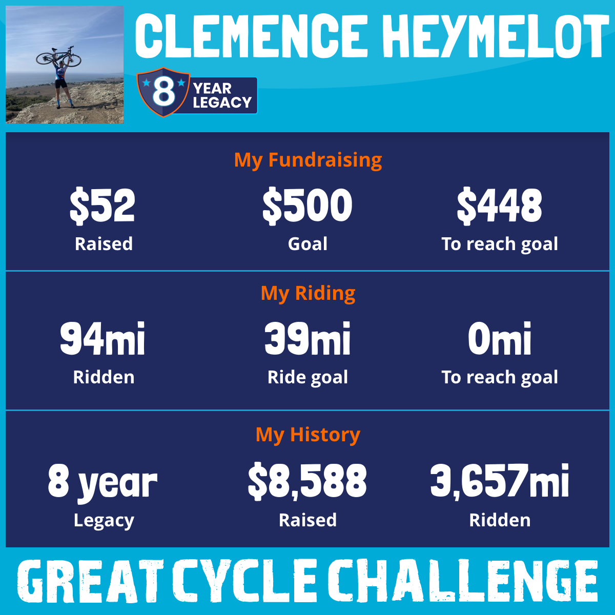 Cancer never gives the kiddos a break, so neither will I! 2025 marks the 8th year I'm doing the challenge to raise funds and awareness to kick kids cancer's butt throughout the month of September. I've pledged to ride only 100 miles this year, because I will be traveling for work and driving across country, but I will make time to ride for the kids! Can I count on you to show me your support?