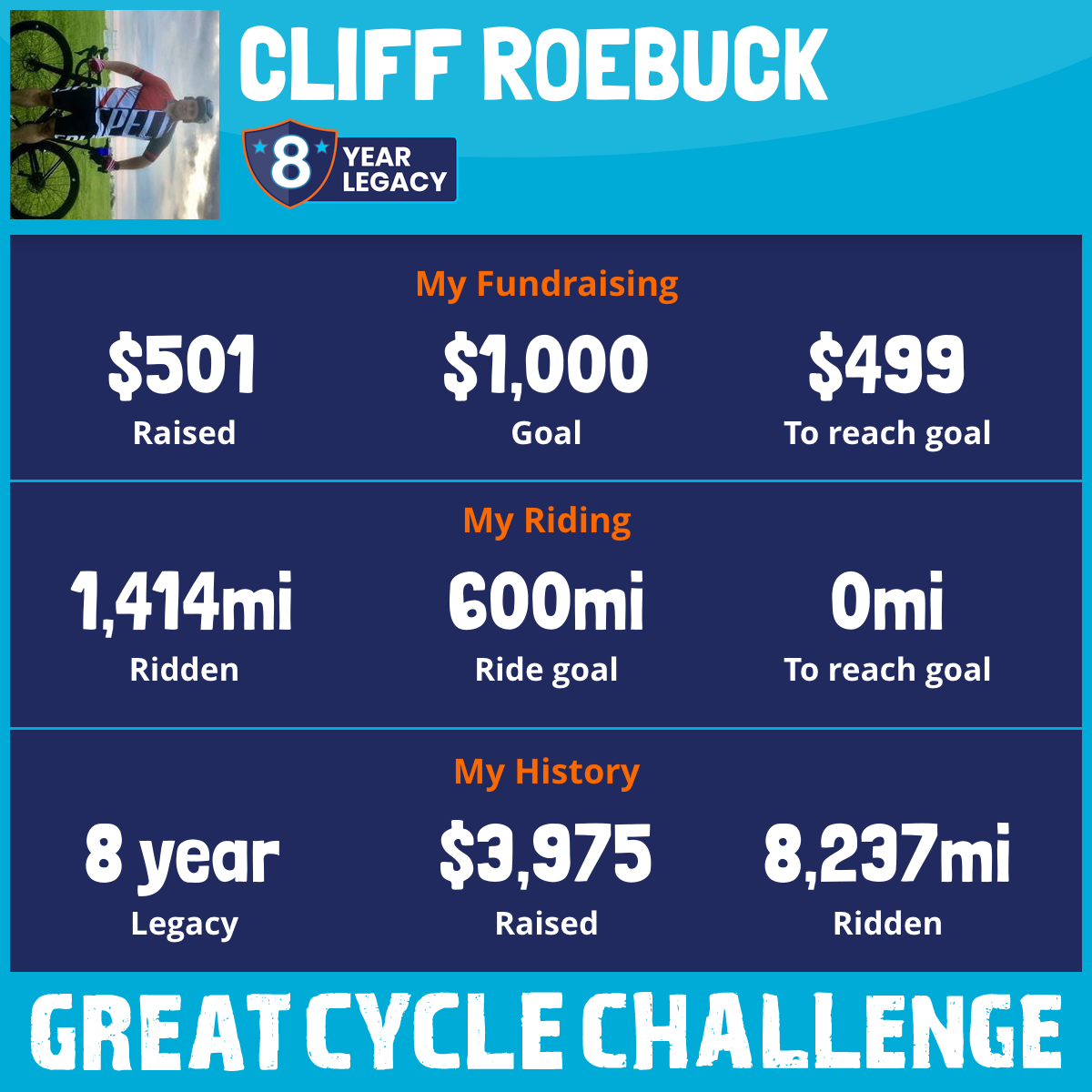 During September, I will be riding 500 miles in honor of kids fighting cancer as part of the Great Cycle Challenge. My goal is to raise $1000 to support Children’s Cancer Research as they seek more effective treatments for children and ultimately a cure for this horrific disease. I would be so grateful for your support.