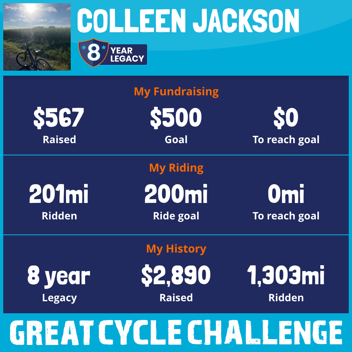 I didn't realize until I got my package that this is my 5th year! I have increased both my fundraising goal and my ride goal this year! I know that I can ride the 250 miles, but will YOU support my effort to raise $500?????