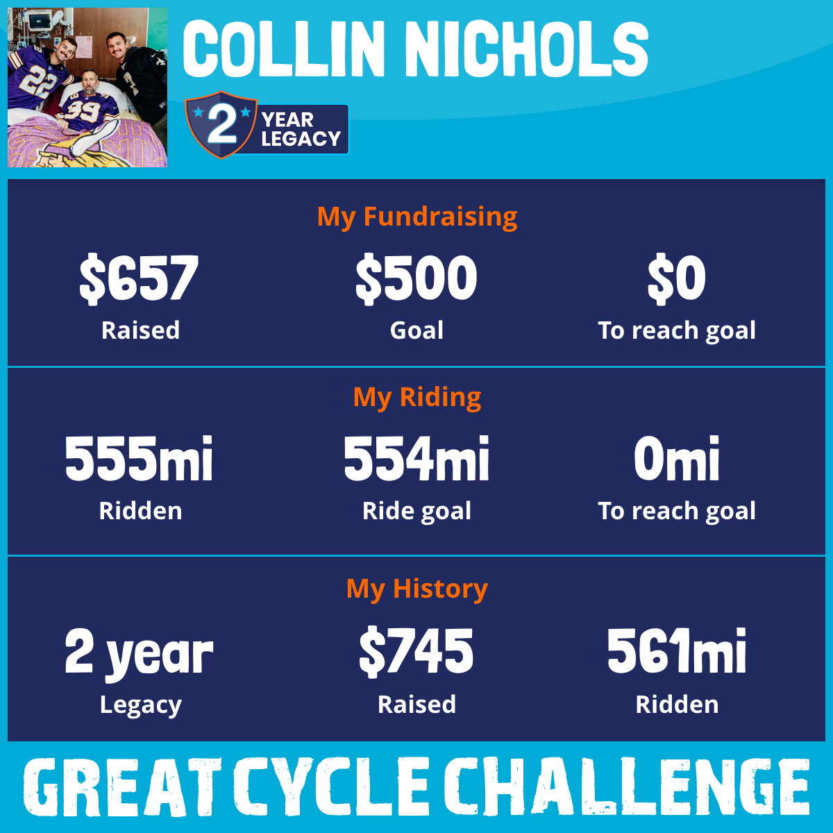 So I am raising funds through my challenge to help these kids and support Children's Cancer Research Fund to allow them to continue their work to develop lifesaving treatments and find a cure for childhood cancer.