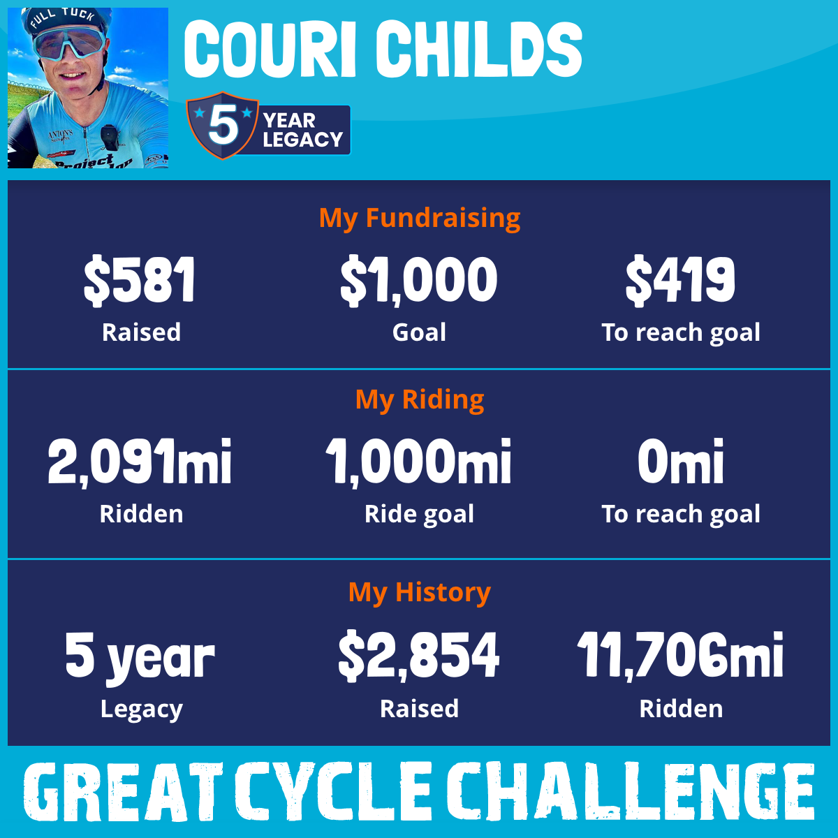 2,274 mi Ridden$581 Raised2025