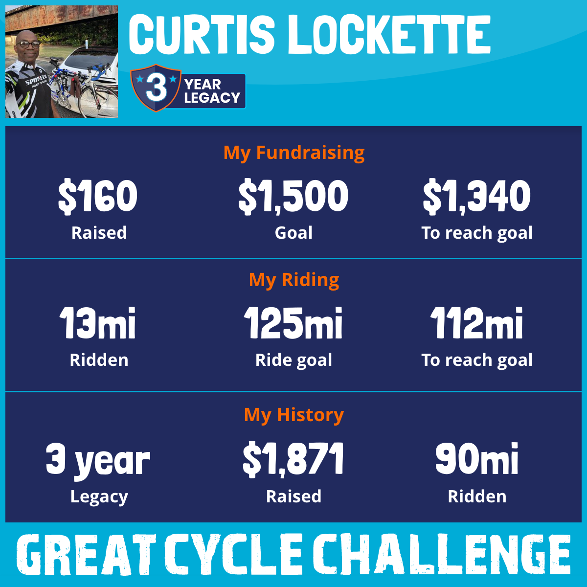 “Curtis, I don’t know who said “If you want happiness for a lifetime, help someone else” but it is so true. You are definitely a helper! Cancer in children is heartbreaking, in adults too. What an awesome cause to ride for! Get those miles man!!🚴🏾‍♂️❤️”