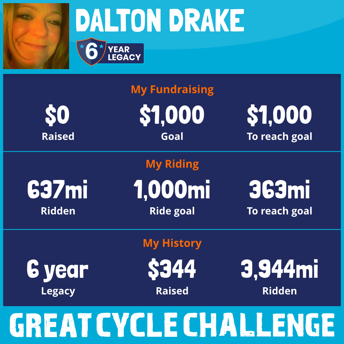 I've raised $0 My goal is $1,000 Donate Now
