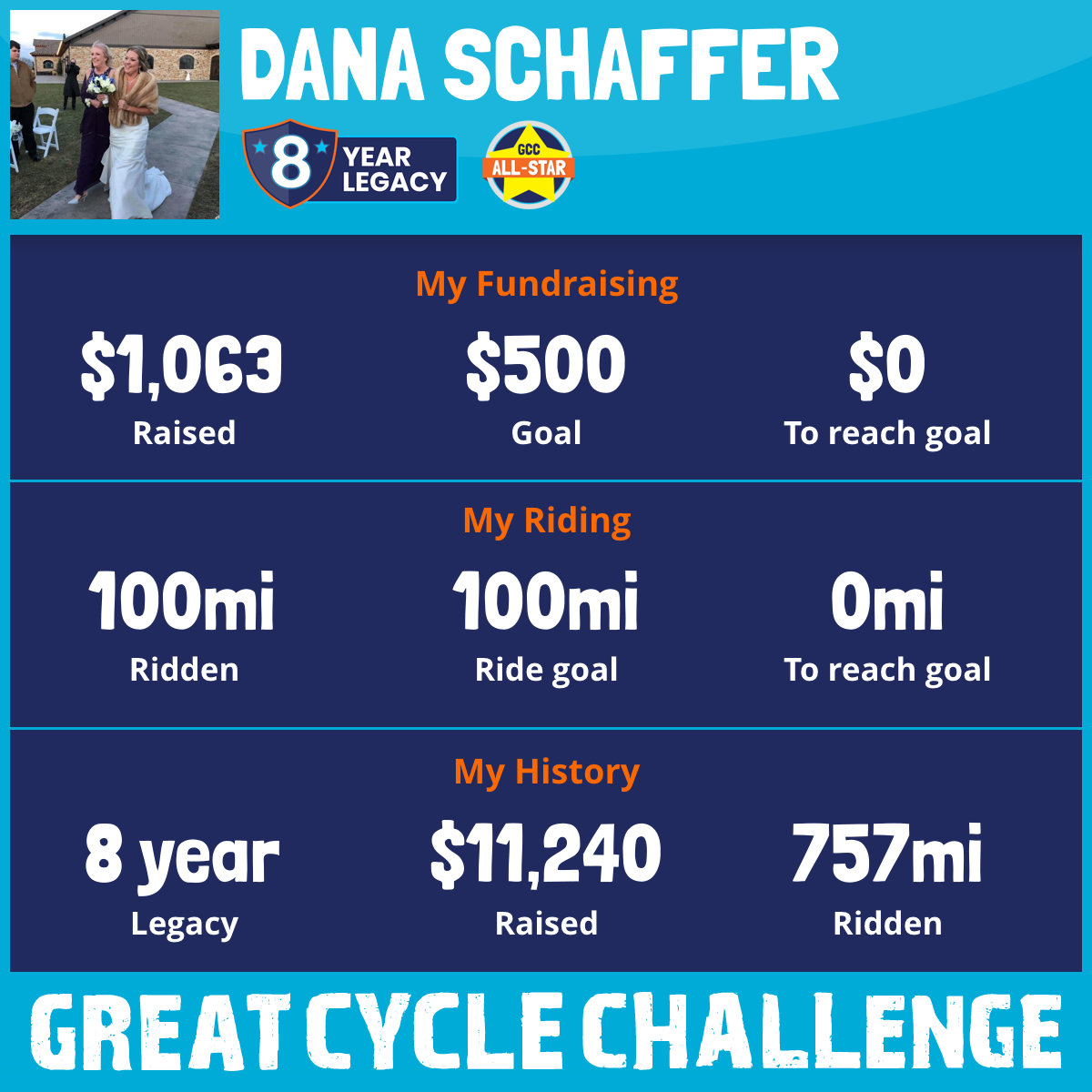 100 mi Ridden$1,063 Raised2025