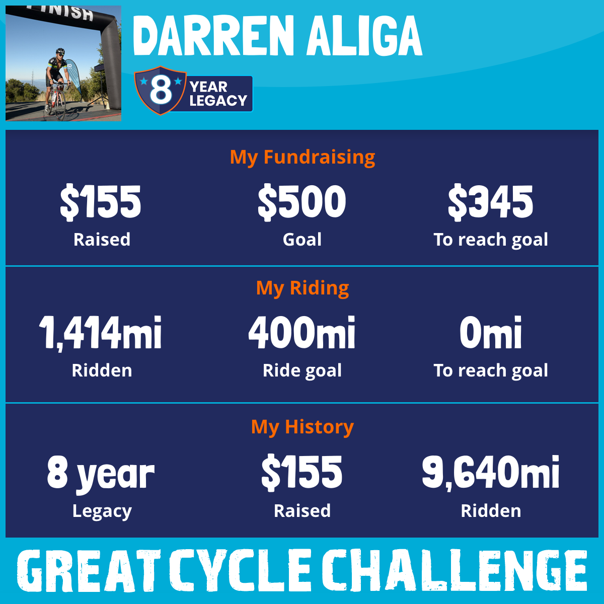 1,414 mi Ridden$155 Raised2025