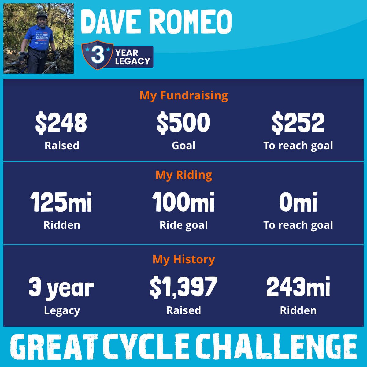 This September, I am once again participating in the Great Cycle Challenge to raise funds for children's cancer research.