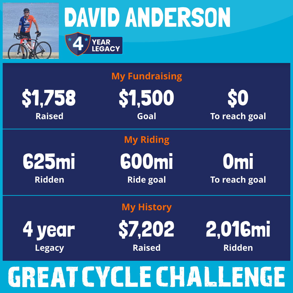 625 mi Ridden$1,758 Raised2025