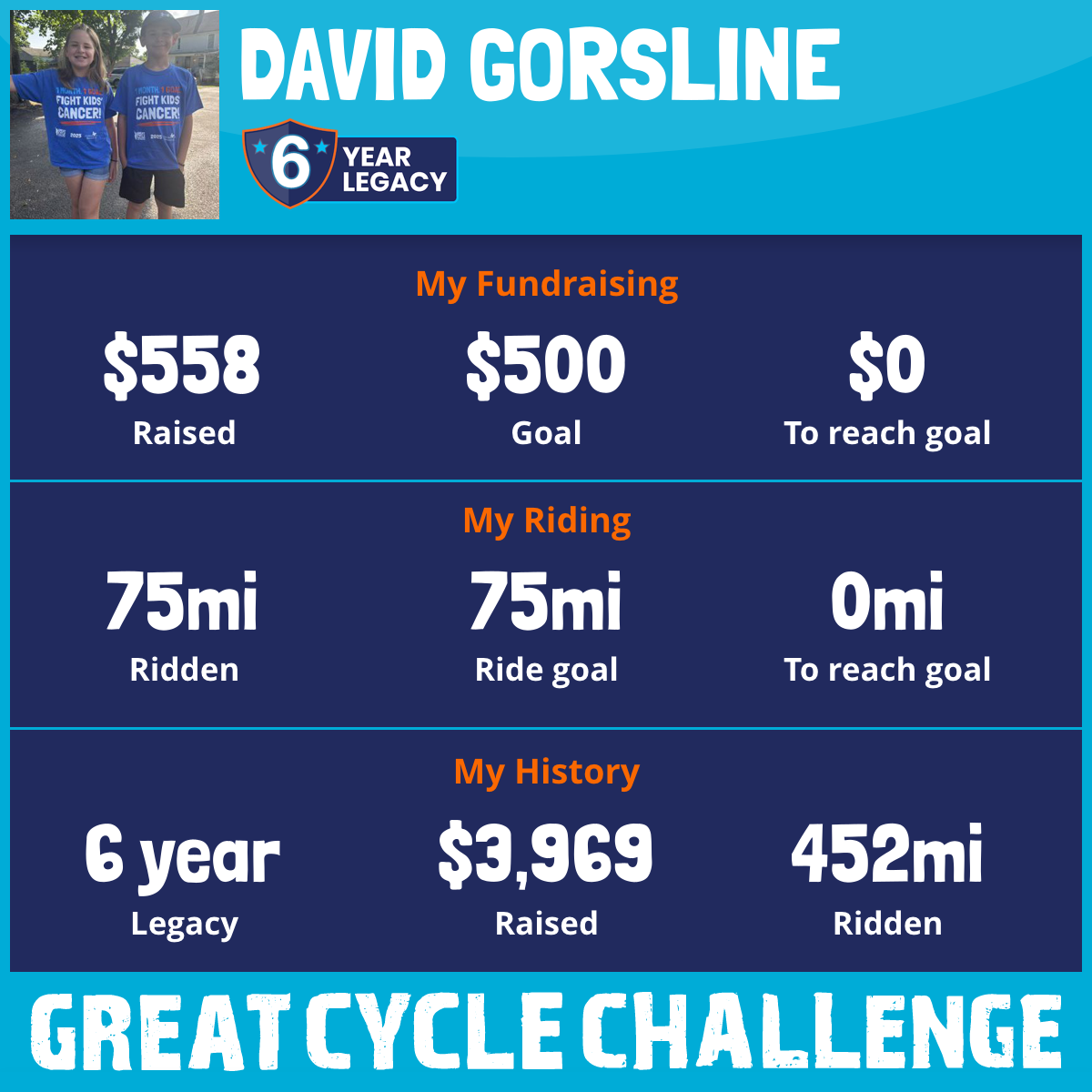 So I am raising funds through my challenge to help these kids and support Children's Cancer Research Fund to allow them to continue their work to develop lifesaving treatments and find a cure for childhood cancer.