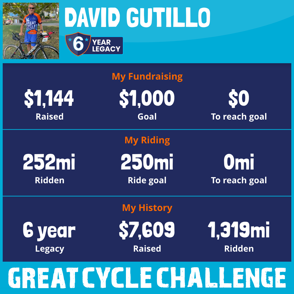 This September, I am taking part in the Great Cycle Challenge to fight kids' cancer! This is my fifth year participating in the Challenge and my third year as captain for a team of riders from my work. I'm humbled and honored to serve in such a worthwhile cause.