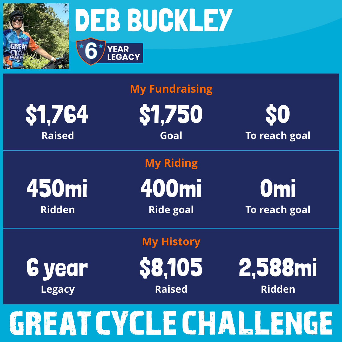 450 mi Ridden$1,764 Raised2025
