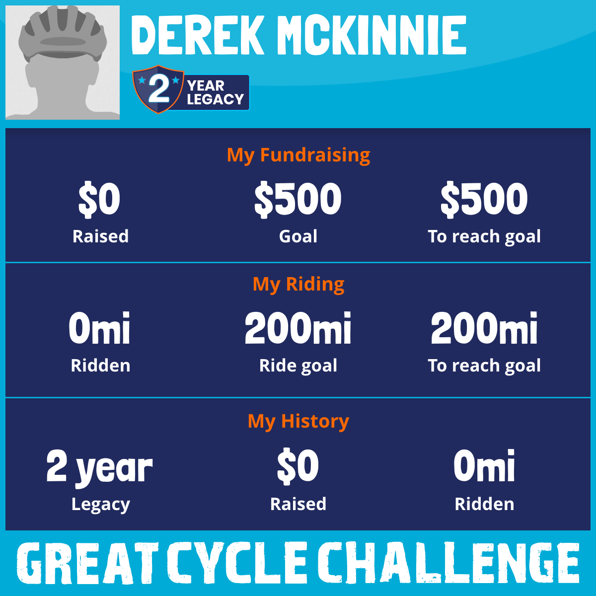I am riding 200 mi for my dad, William McKinnie. Please sponsor me and support my challenge to fight kids' cancer and save little lives.