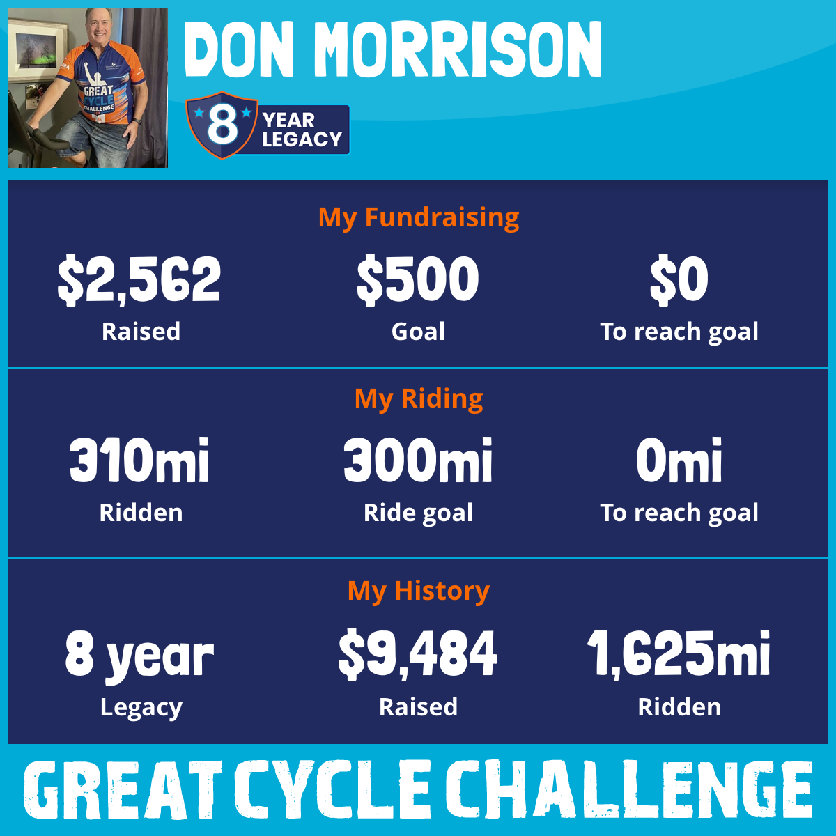 302 mi Ridden$1,717 Raised2023