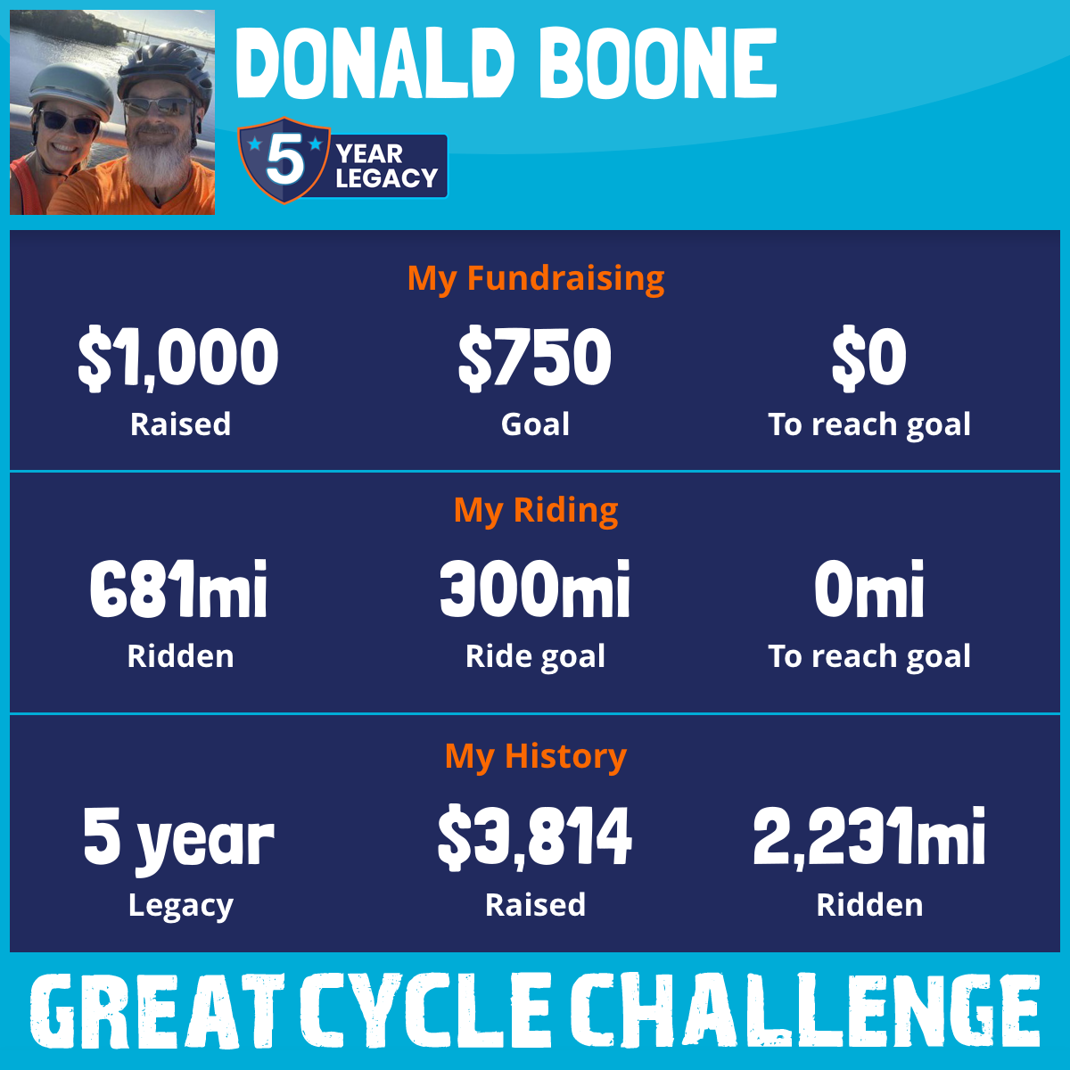 303 mi Ridden$535 Raised2023