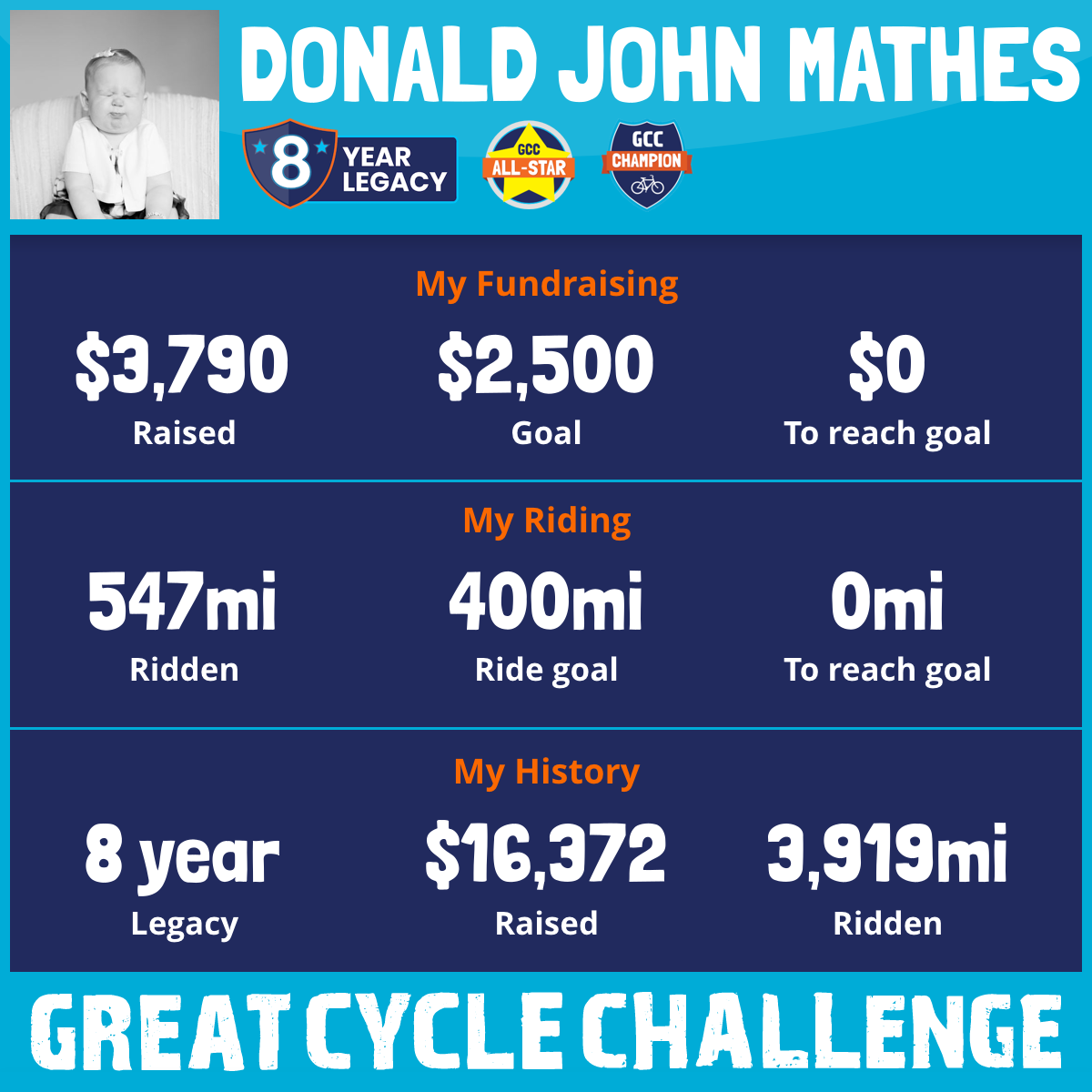 I am riding 400 mi to fight kids' cancer and save little lives. Please sponsor me to support my challenge!