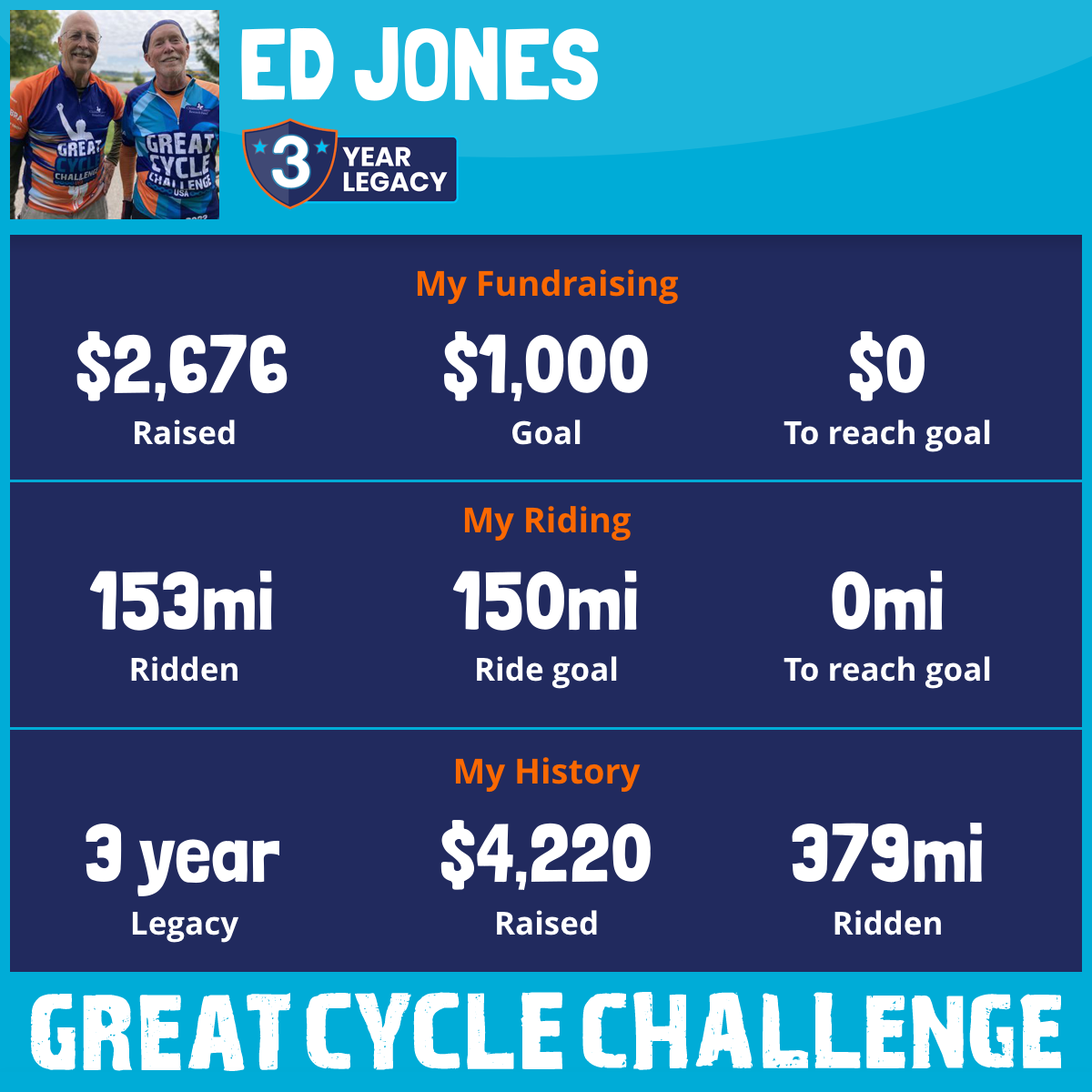T-Griff, Jimmie's father, will be joining me for rides during our September challenge. T-Griff, along with me, thank the supporters from all over the U.S. and some supporters from across the ocean.